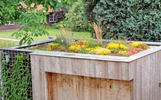 Eine Garagenbegrünung verlängert die Dachlebensdauer und nützt der Natur, ganz besonders mit der „Bienenweide“.